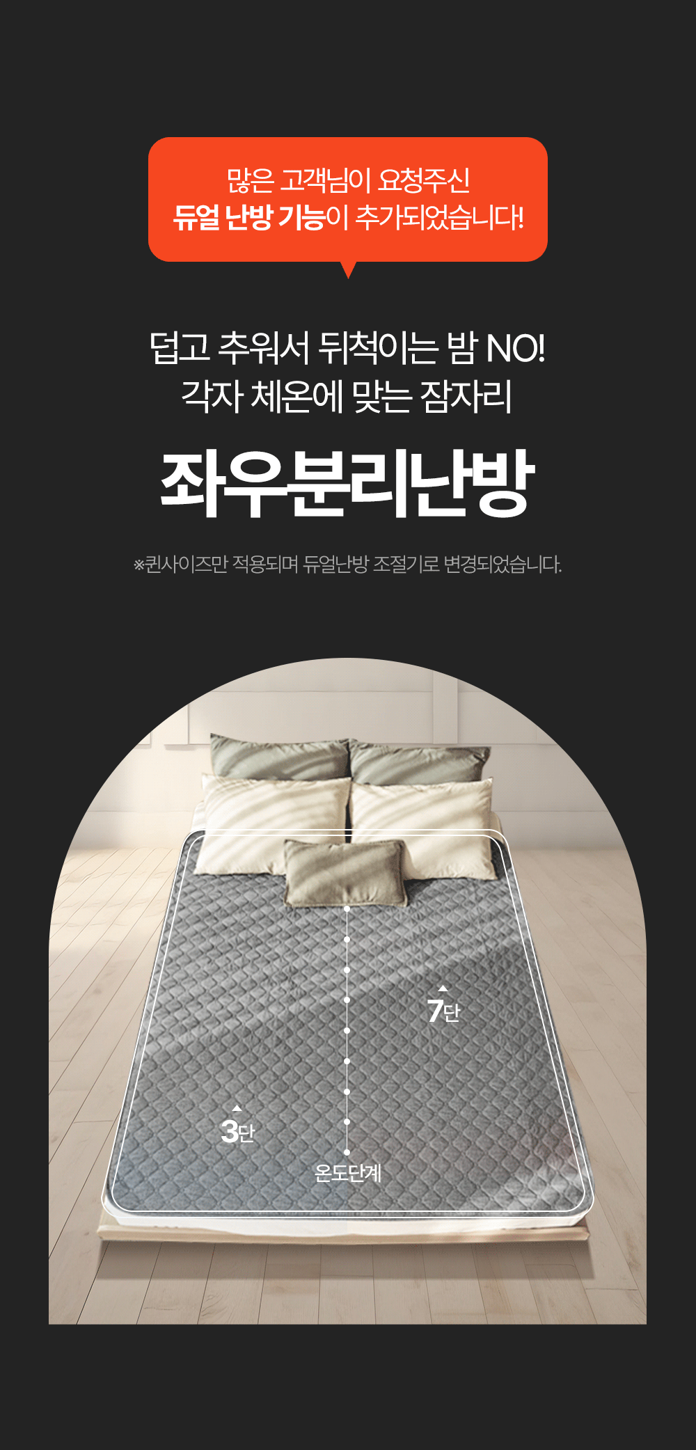 퀸 사이즈 듀얼 난방은 공식몰에서 구매할 때만 적용됩니다.